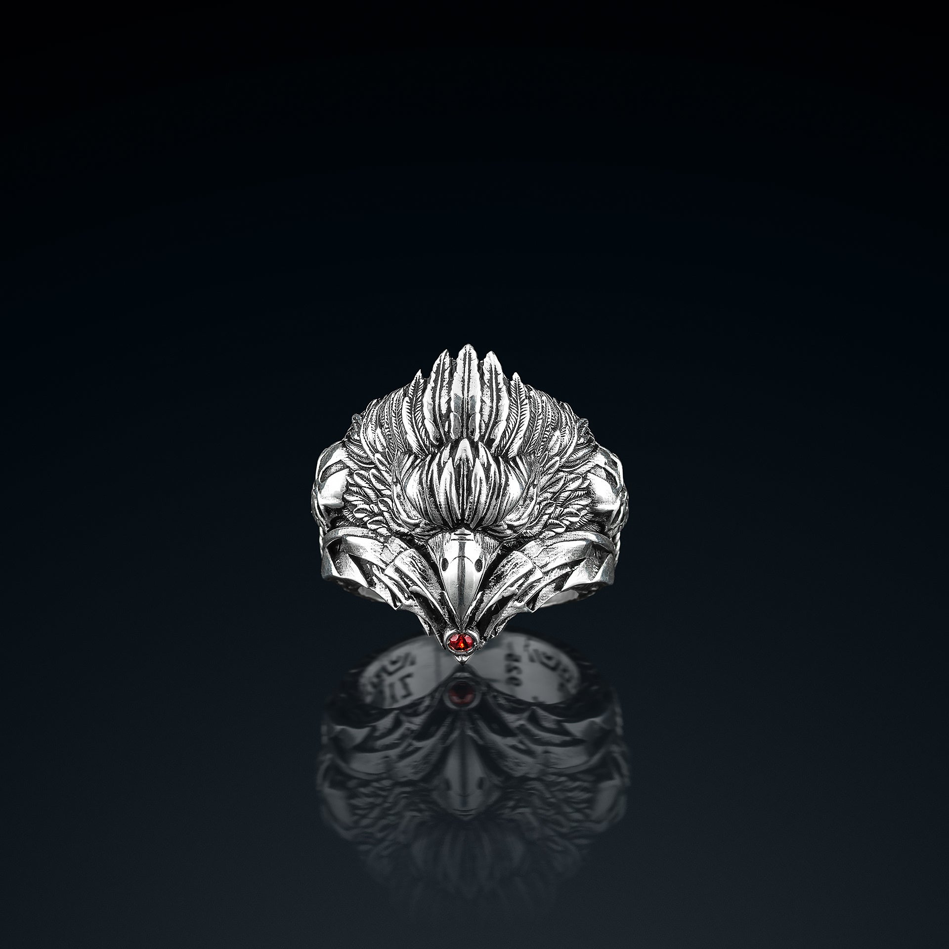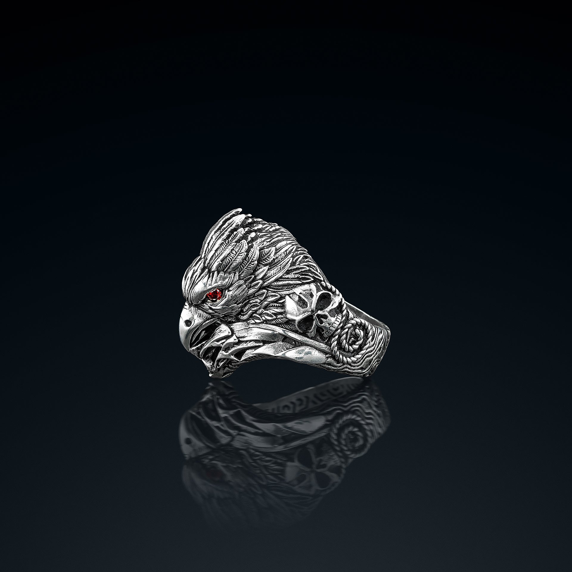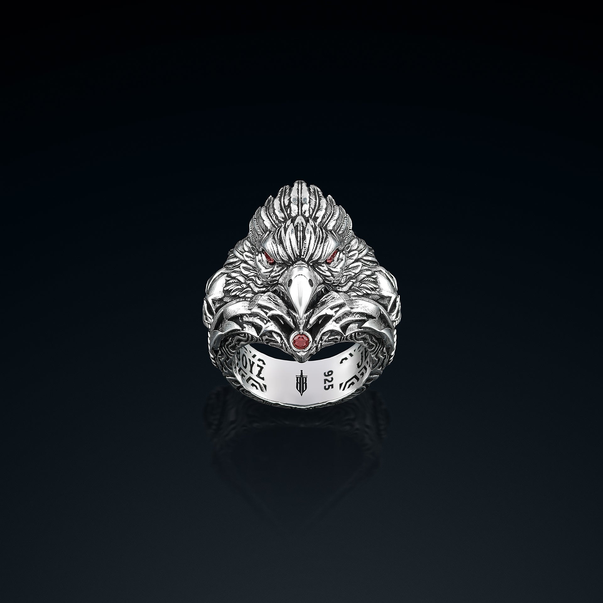 Dış yüzeyinde, her detayıyla öfkesini bastıran ama her an saldırmaya hazır bir kartal başı… Gözlerindeki yakut kırmızısı, taşıyıcısının asla geri adım atmayacağını fısıldıyor.