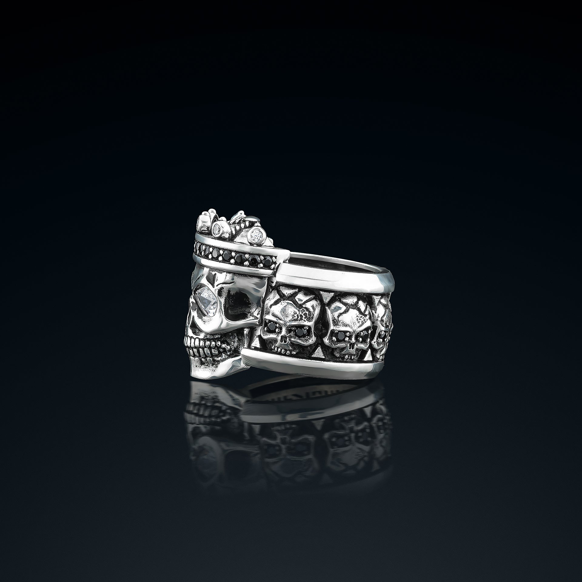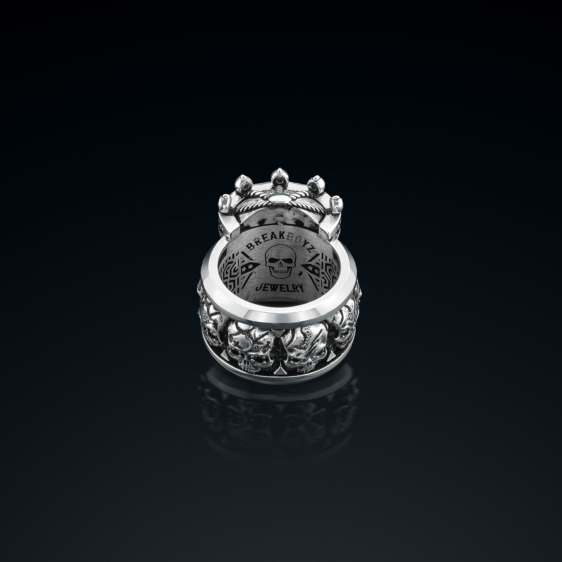 Düşmüş bir kardeşin motorunun enkazından dövülen bu yüzük, sadakat ve özgürlük üzerine kurulan bir kardeşliğin hikâyesini anlatıyor. Büyük merkezi kafatası lideri temsil ederken, onu çevreleyen altı küçük kafatası, birbirine sonsuza dek bağlı kurucu üyeleri simgeliyor.
